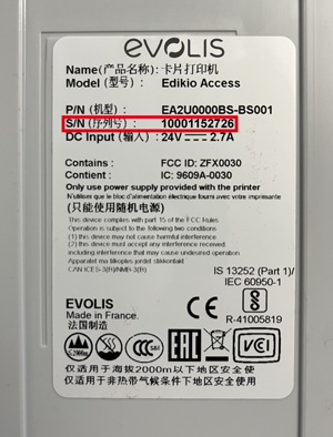 *Fra serienummer 10001152726. Du kan finde serienummeret på undersiden af din Access. Du finder en etiket og indikationen S/N, som svarer til serienummeret på din printer: